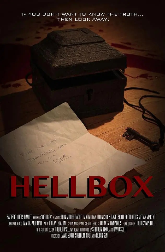 《地狱盒子》是一部偏执的超自然惊悚片,讲述了一场横跨五个世纪的反人类阴谋。它是通过交织的故事情节讲述的,不同的人(来自神圣兄弟会的骑士,一群大学女生,一个自杀的精神病医生,一对有着自己黑暗秘密的鬼魂夫妇)看到他们的生活发生了可怕的变化,当他们拥有一个古老的,神秘的盒子-有人说它持有一块地狱。