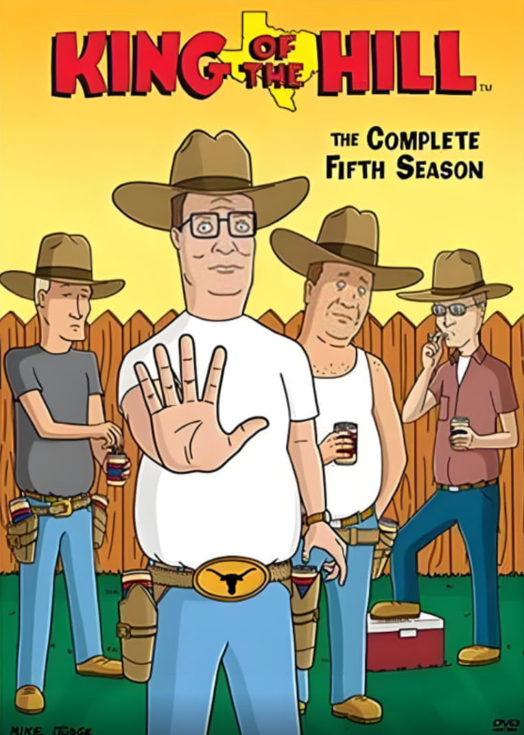 King of the Hill 是美国动画情景喜剧,由 Mike Judge和 Greg Daniels于1997年1月12日至2010年5月6日在福克斯发行。故事集中在虚构的德克萨斯州(Texas)的阿伦镇(Arlen)上的 Hank Hill 一家。它试图用保持现实的方法,在日常生活中的常规和世俗方面寻求幽默,并对一些时事和社会现象进行调侃,但相较于恶搞之家(Family Guy)和南方公园(South Park)等其他长寿动画,出发点相较实际及老成。